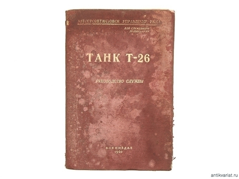 Книга "Танк Т-26: руководство службы". Издана Автобронетанковым управлением РККА, под грифом "Для служебного пользования". Воениздат, 1940 год.