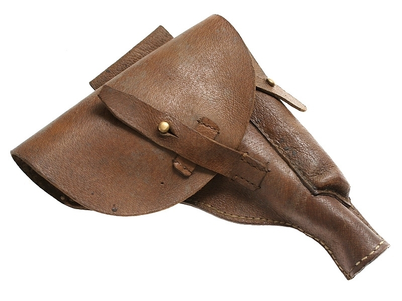 Кобура из плотной коричневой кожи для пистолета "Парабеллум". Болгарское производство 1920-х - 1930-х годов. Складское состояние.
