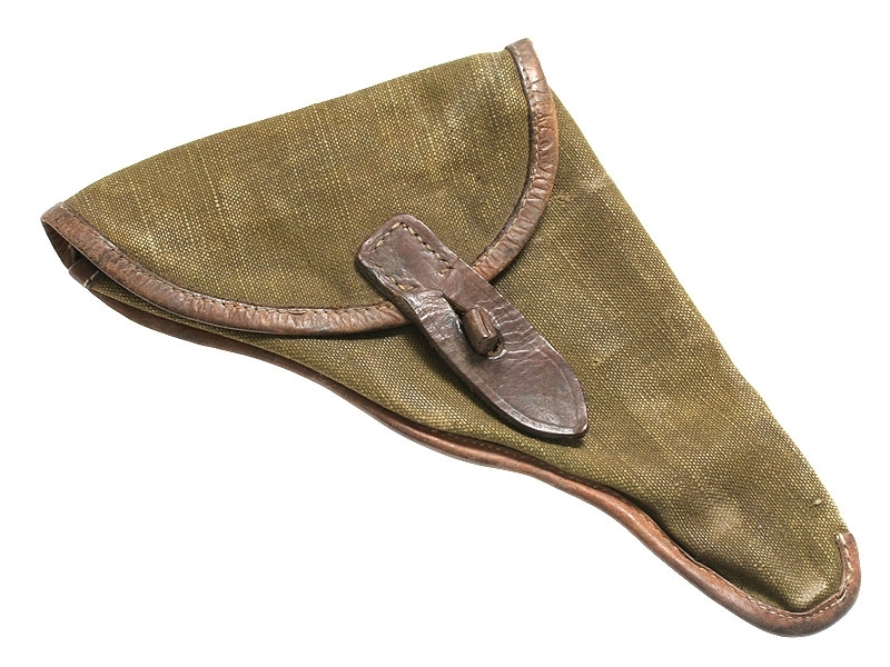 Брезентовая кобура для пистолета П-08 "Парабеллум" чехословацкого производства. Имеется товарное клеймо фирмы-изготовителя "Bratri Vitouskovek". Очень хорошее состояние.