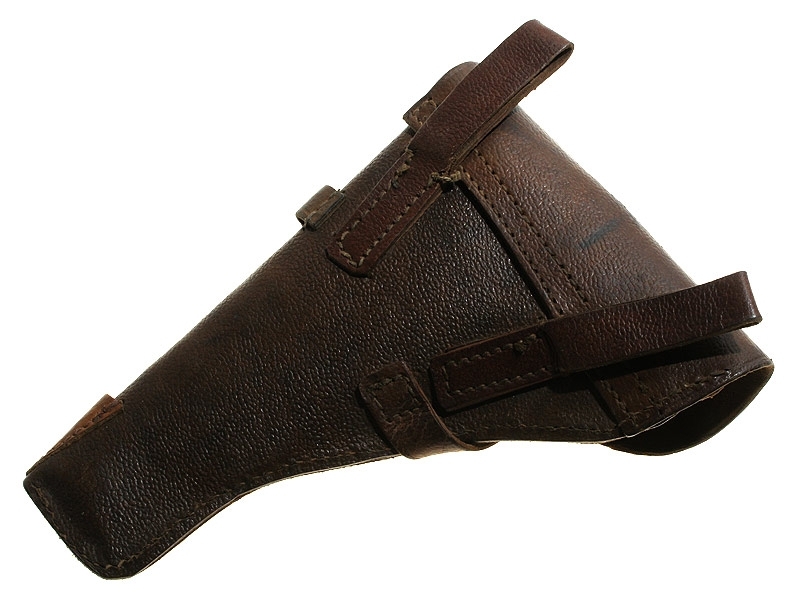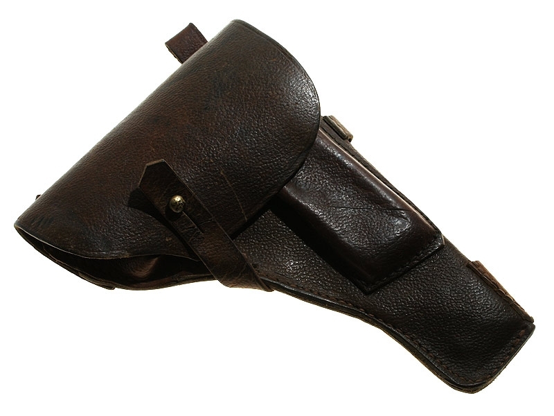 Кобура из коричневой кожи для пистолета ТТ. Предвоенного либо военного выпуска, на внутренней стороне крышки - нечитаемые штампы изготовителя. Хорошее состояние.