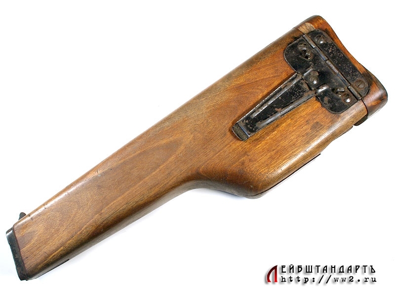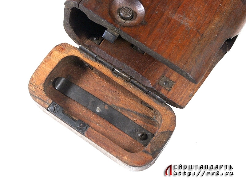 Приставная кобура-приклад к автоматическому пистолету системы Стечкина. Изготовлена из дерева и снабжена кнопкой-фиксатором. Предмет в очень хорошей сохранности, единственный видимый недостаток - наличие незначительной трещины на корпусе.