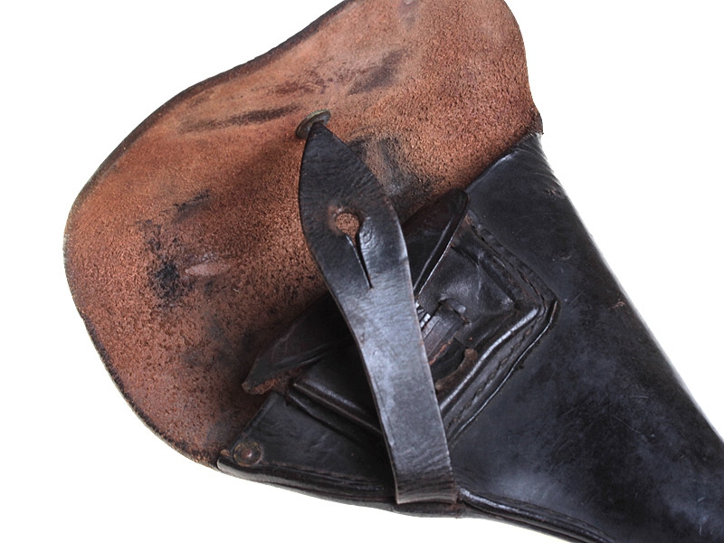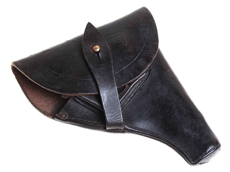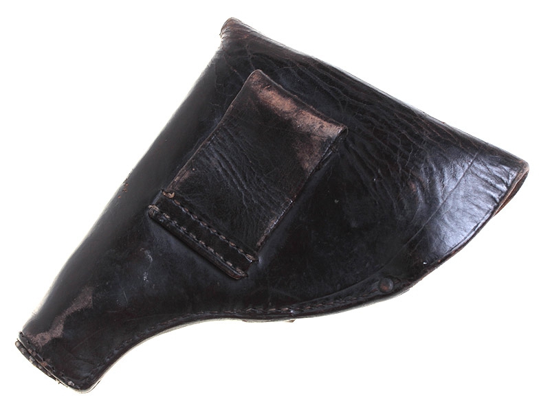 Неидентифицированная револьверная кобура довоенного производства. Без клейм, по размеру примерно подходит на револьвер Webley Mark IV/38. Хорошее состояние.