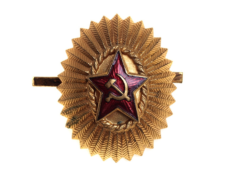 Кокарда с накладной звездой на офицерскую фуражку либо папаху. Начало 1960-х годов. Томпак, золочение, эмаль. Отличное состояние.