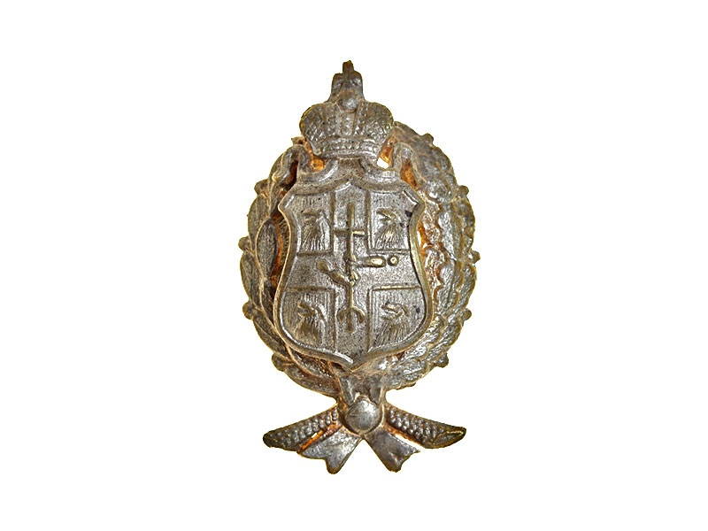 Оригинальная кокарда на головной убор полицейского с гербом Тифлисской губернии. Начало ХХ века. Латунь, серебрение.