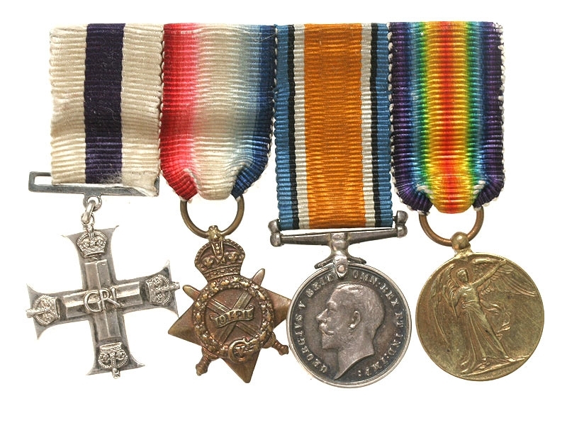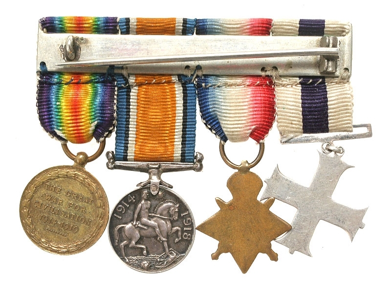 Наградная колодка из четырех фрачных наград ветерана Первой мировой войны.