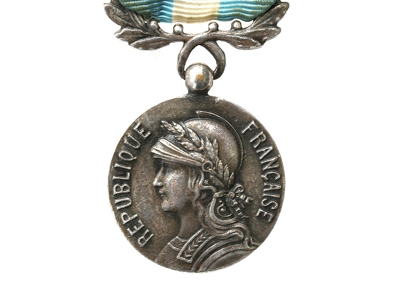 Колониальная медаль с планкой "Сахара". Белый металл, на оригинальной шелковой ленте. Очень хорошее состояние.