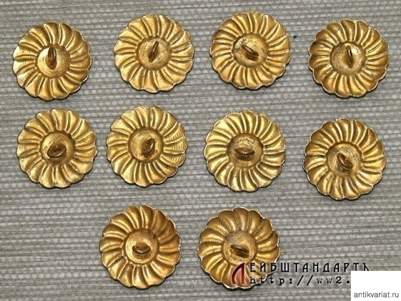 Комплект из десяти пуговиц на гусарский мундир времен Первой мировой войны. Отличное состояние, практически полностью сохранилось оригинальное золочение. Могут пригодиться для комплектации мундира.