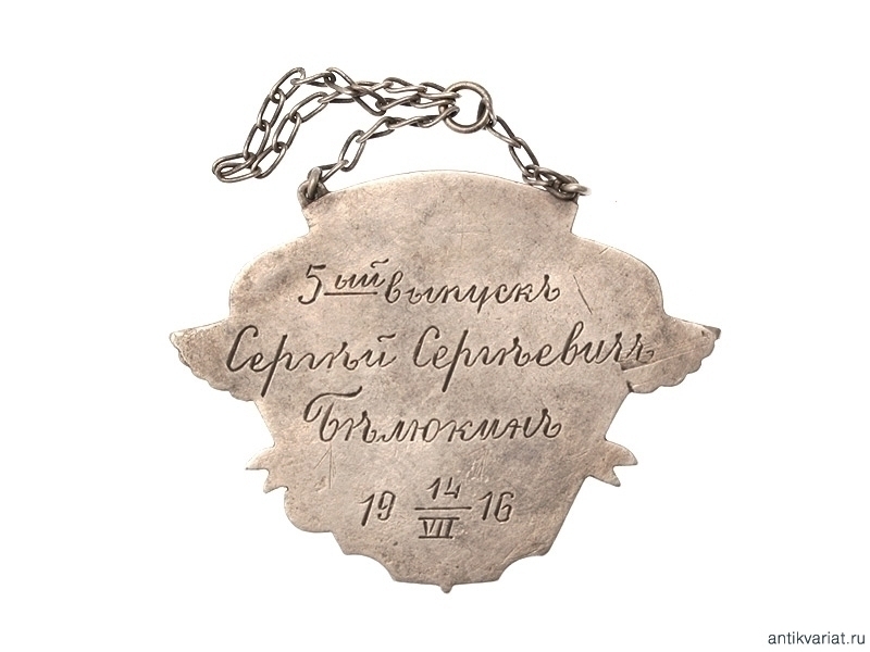 Копия жетона 4-й Московской школы прапорщиков, выпуск 1915 года. Серебро.
