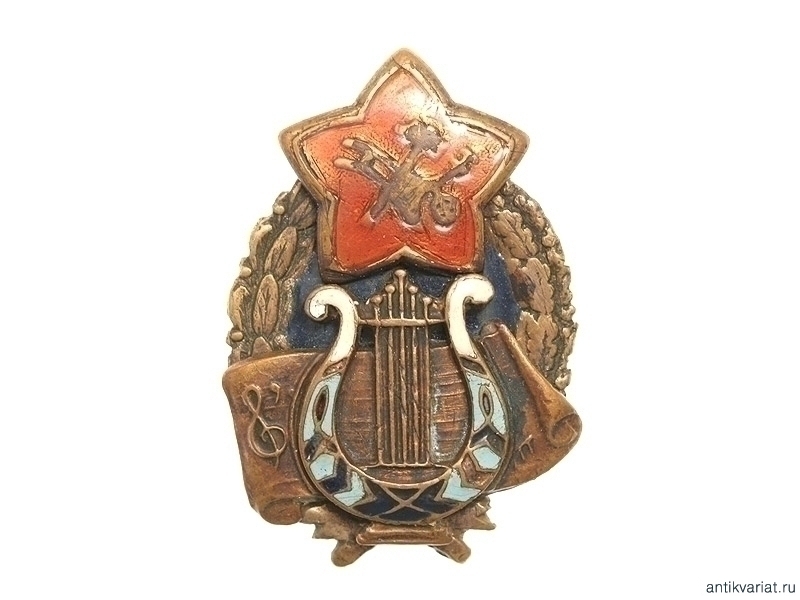 Копия значка командира музыкального взвода РККА начала 1920-х годов. Бронза, эмаль.