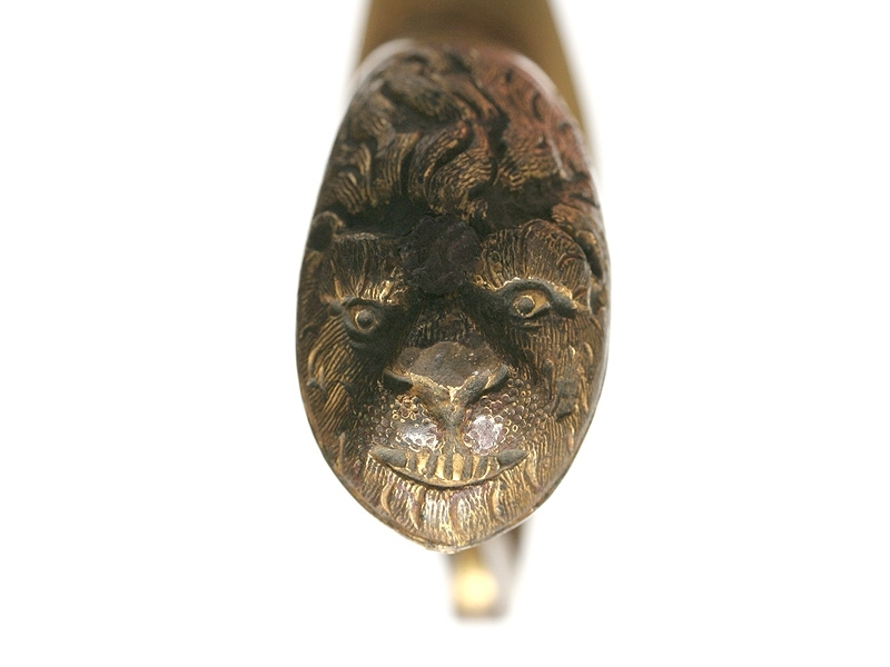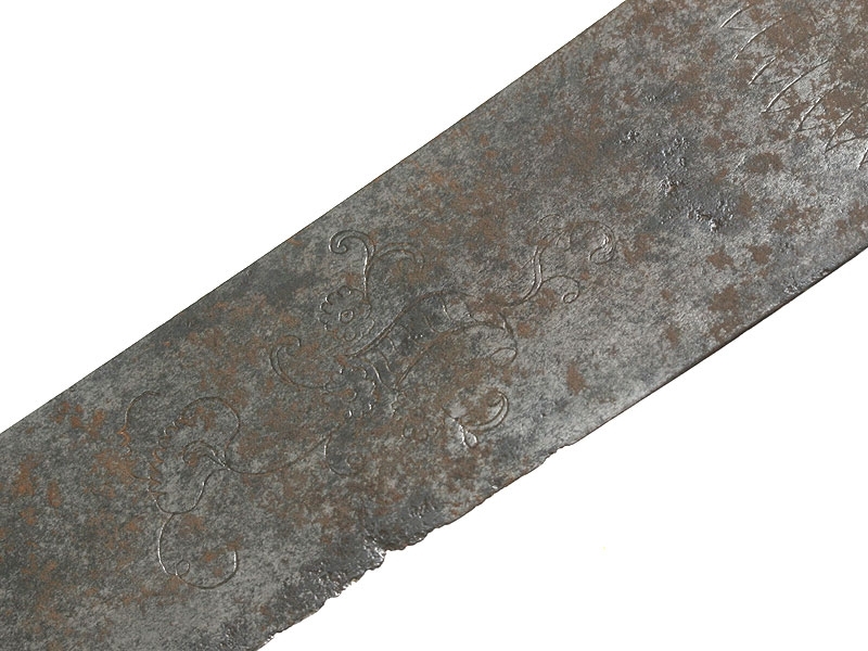 Кортик морской мичманский начала XIX века. Клинок без клейм, украшенный гравированным растительным орнаментом, рукоять из слоновой кости, с латунным прибором, покрытым ярким огненным золочением. Ножны отсутствуют.