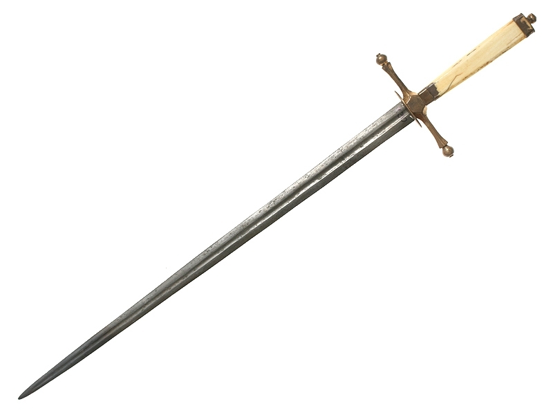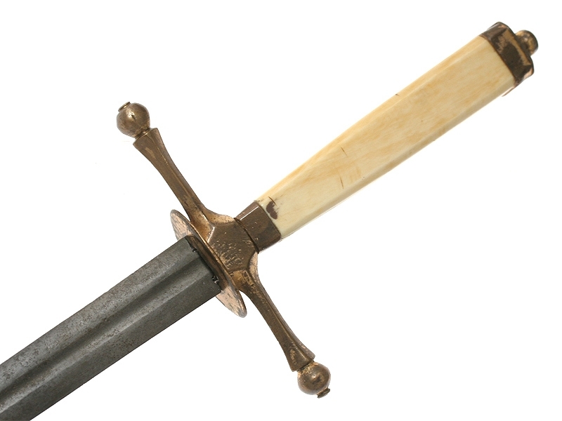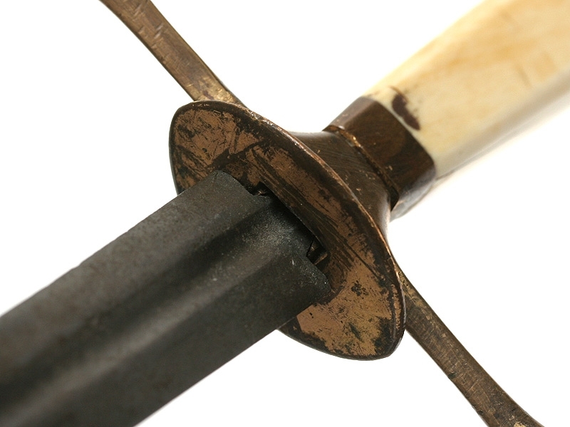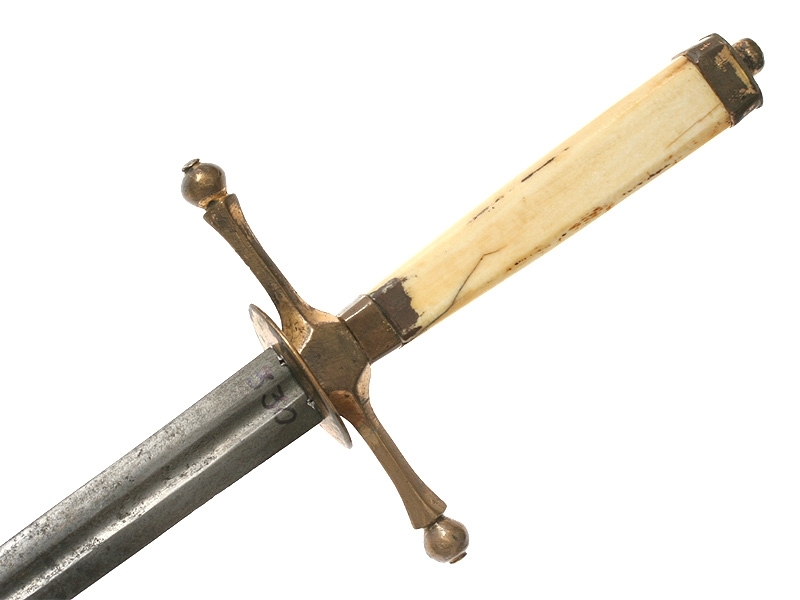 Кортик морской офицерский начала XIX века. Клинок без клейм, ничем не украшенный, рукоять из слоновой кости, с латунным прибором, сохранившим остатки позолоты. Ножны отсутствуют.