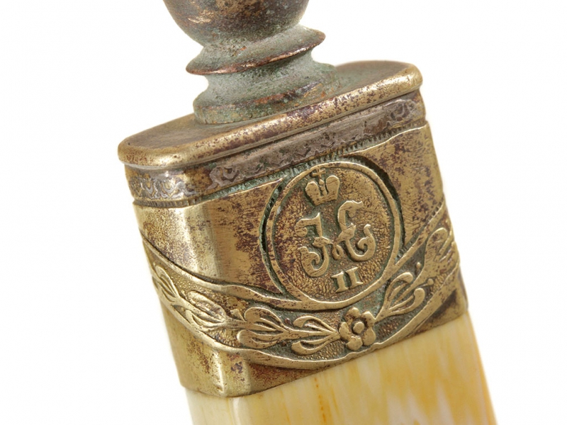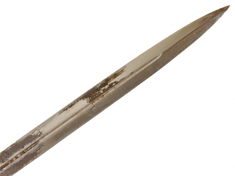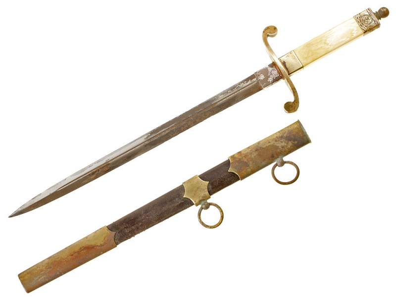Кортик офицера либо военного чиновника, изготовленный в начале - середине 1910-х годов (до Февральской революции 1917 года). Клинок ромбического сечения, с одним узким долом на каждой стороне, без клейм, никелированный. На клинке имеются незначительные следы коррозии из-за попавшей в ножны влаги: во время или сразу после Октябрьской революции владелец спрятал свой кортик на чердаке жилого дома, где он и сохранился до нашего времени. Рукоять из слоновой кости, прибор латунный, в недоступных для чистки местах сохранились остатки оригинального золочения. Навершие украшено рельефным вензелем Николая II. Ножны деревянные, обтянутые кожей, с латунным устьем, гайкой и наконечником.