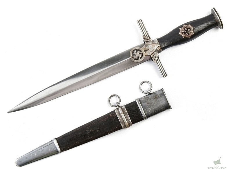 Парадный кортик старшего офицерского состава службы ПВО (RLB) образца 1938 года. Клинок без клейм, прибор рукояти из посеребренной латуни. Выпуск конца 1930-х годов. Xорошее состояние.