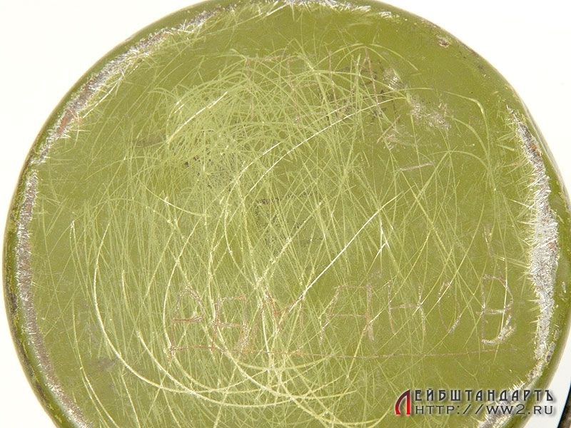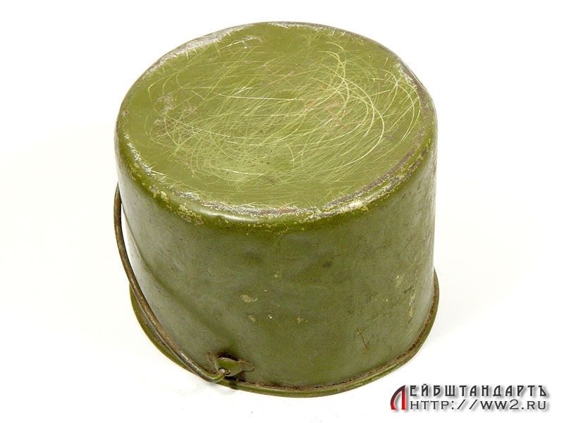 Котелок полевой солдатский круглый времен Второй мировой войны в очень хорошем состоянии. Жестяная, луженая внутри основа, снаружи сохранилось оригинальное красочное покрытие. На дне нацарапана фамилия владельца.