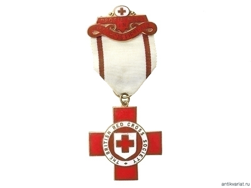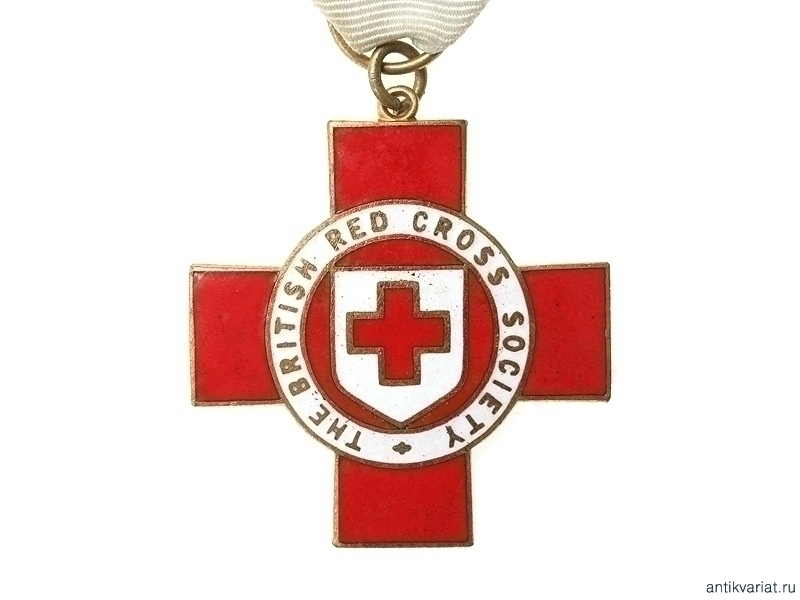 Крест Британского Красного Креста. Бронза, эмаль, золочение. На оригинальной шелковой ленте. Очень хорошее состояние.