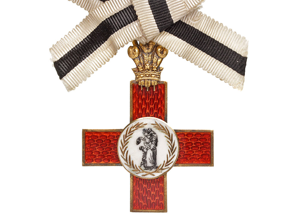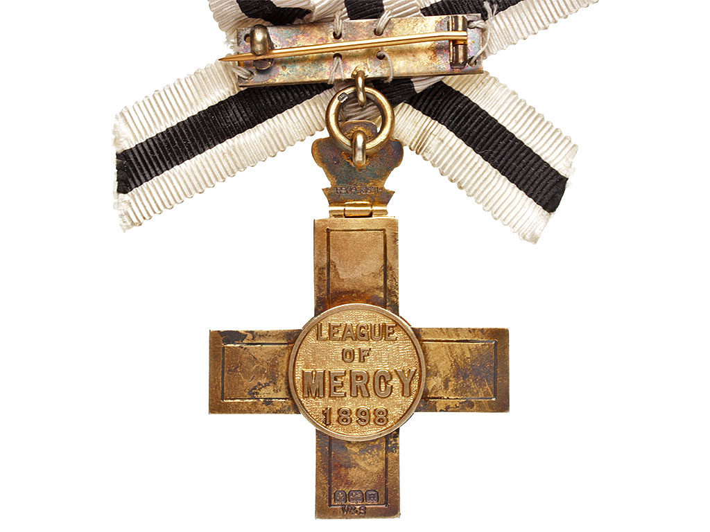 Лига милосердия была основана по инициативе принца Уэльского (позже Короля Эдуарда VII). Ее цель заключалась в поддержании организованных на добровольные пожертвования больниц (в то время всеобщие бесплатные медицинские услуги были недоступны). Крест был учрежден "в качестве вознаграждения за личные услуги, безвозмездно оказанные в связи с целями, для которых Лига была создана". После того, как в 1948 году была организована Национальная служба здравоохранения Англии, она взяла на себя и больницы Лиги. После этого Крест не присуждался. Однако Лига была восстановлена в качестве зарегистрированной благотворительной организации 30 марта 1999 года, и орден также был восстановлен (из позолоченного серебра, без эмали и с датой "1999". Что касается первой версии креста, в год присуждалось около пятидесяти наград, таким образом, данный крест встречается довольно редко.
