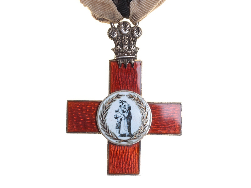 Лига милосердия была основана по инициативе принца Уэльского (позже Короля Эдуарда VII). Ее цель заключалась в поддержании организованных на добровольные пожертвования больниц (в то время всеобщие бесплатные  медицинские услуги были недоступны). Крест был учрежден "в качестве вознаграждения за личные услуги, безвозмездно оказанные в связи с целями, для которых Лига была создана". После того, как в 1948 году была организована Национальная служба здравоохранения Англии, она взяла на себя и больницы Лиги. После этого Крест не присуждался. Однако Лига была восстановлена ​​в качестве зарегистрированной благотворительной организации 30 марта 1999 года, и орден также был восстановлен (из позолоченного серебра, без эмали и с датой "1999". Что касается первой версии креста, в год присуждалось около пятидесяти наград, таким образом, данный крест встречается довольно редко.