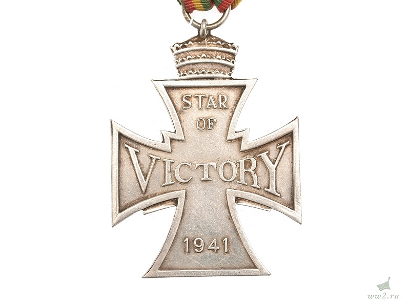 Крест победы 1941 года на оригинальной ленте. Надпись на кресте гласит: "Звезда победы 1941".