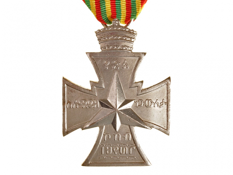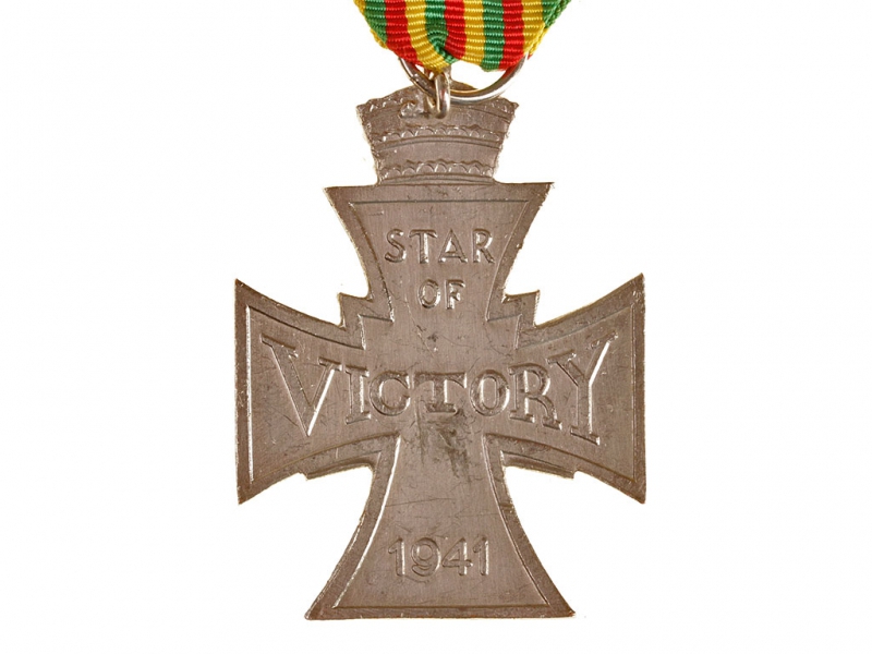 Крест за победу над итальянскими войсками в 1941 году. Белый металл, на оригинальной ленте.