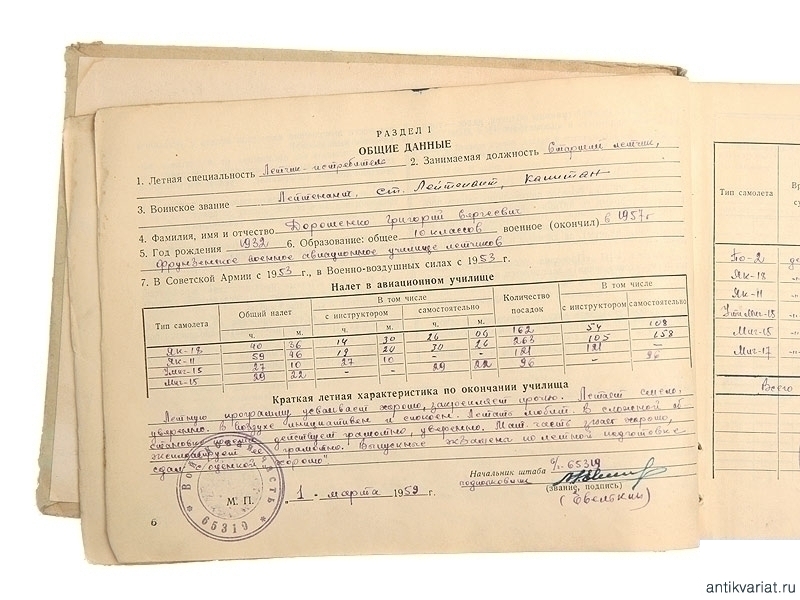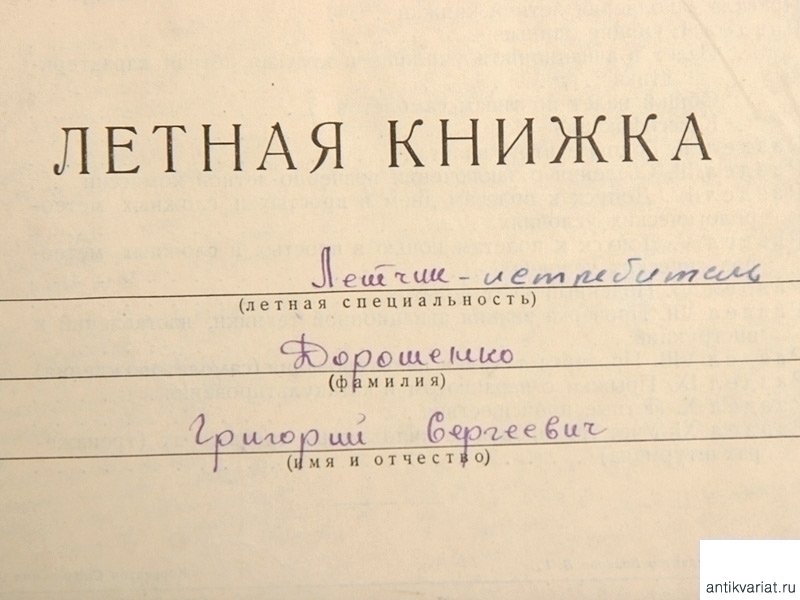 Летная книжка летчика-истребителя Дорошенко Г.С, СССР