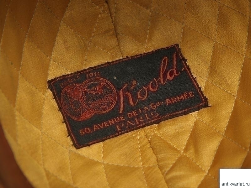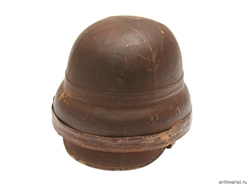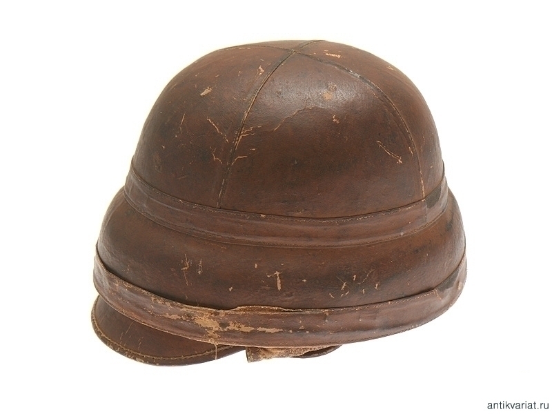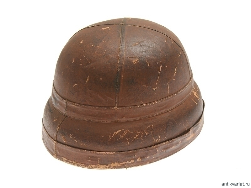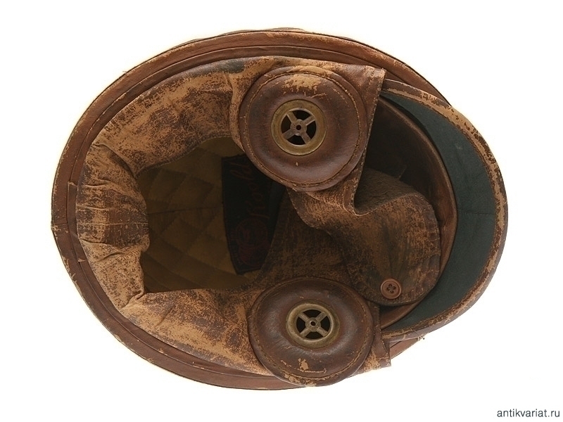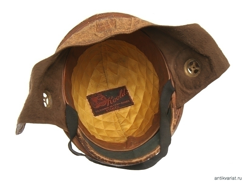 Шлем из коричневой кожи с козырьком. Изнутри имеется бирка с клеймом производителя и датой выпуска "Paris 1911 Roold 50 Avenue de la G de Armee Paris". Именно эти шлемы поставлялись в Русскую армию для военного воздушного флота.