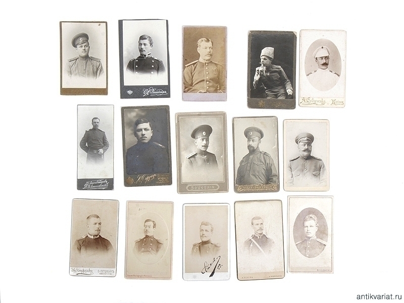 Лот из пятнадцати портретных фотографий военнослужащих. 1910-е годы. Очень хорошее состояние.