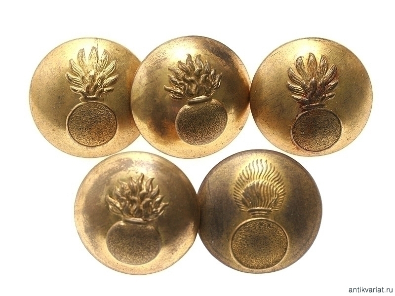 Лот из пяти офицерских гренадерских пуговиц различных изготовителей начала ХХ века.