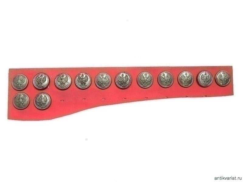 Лот медных посеребренных мундирных пуговиц с изображением Легионерского орла: это самый ранний известный выпуск для только что на тот момент образованных польских частей в составе русской Императорской армии. На реверсе каждой пуговицы - клеймо: "А.И.Копейкинъ - Петроград - 1 сортъ". Отличное состояние.
