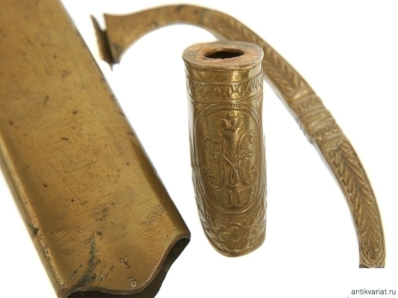 Лот запчастей офицерской шашки образца 1909г. Хорошее состояние,красивое навершие с вензелем Николая II, имеются остатки позолоты. На всех элиментах стоят сборочные клейма.