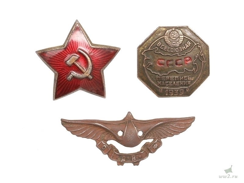 Лот значков: кокарда, знак переписи населения, поврежденный редкий летный знак