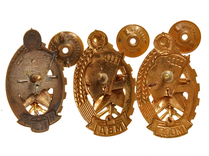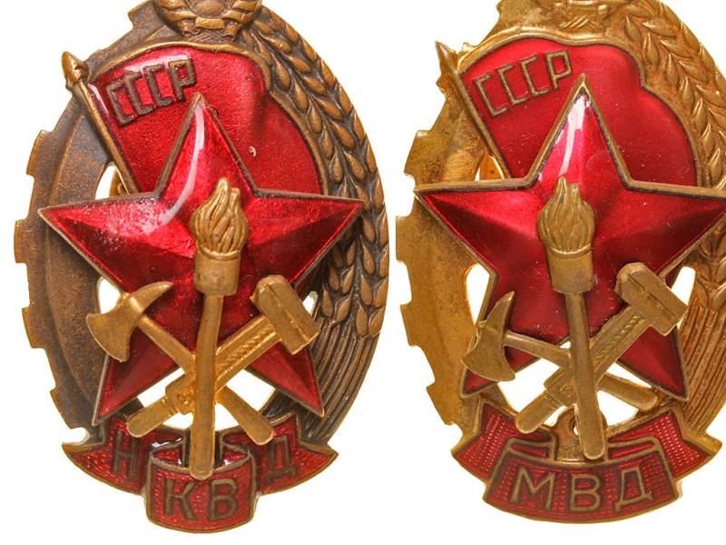 Лот из трех наградных знаков "Лучшему работнику пожарной охраны" - соответственно с аббревиатурами "НКВД" (Народный комиссариат внутренних дел), "МВД" (Министерство внутренних дел) и "МООП" (Министерство охраны общественного порядка). Томпак, золочение, эмаль. Очень хорошее состояние.