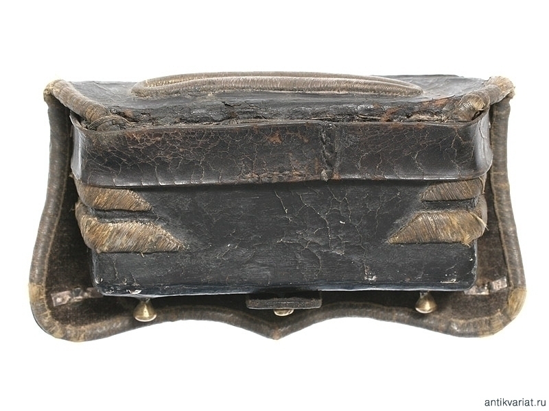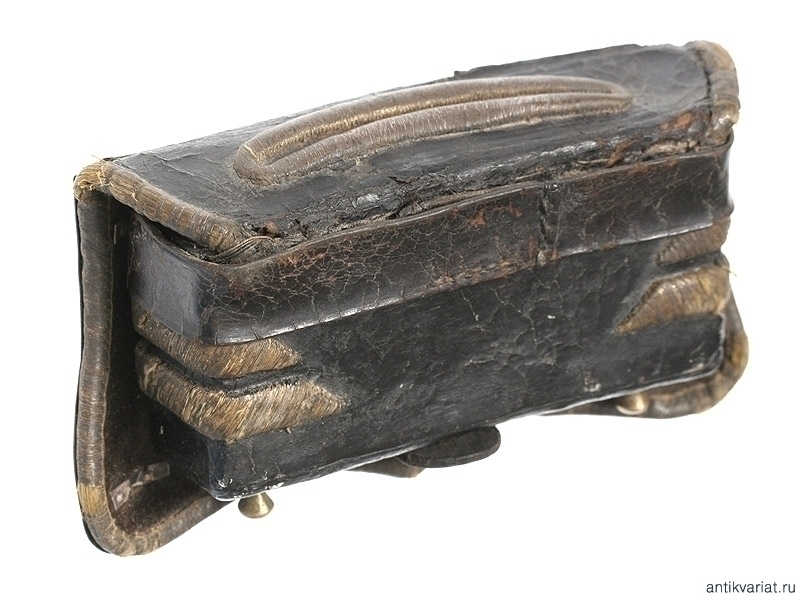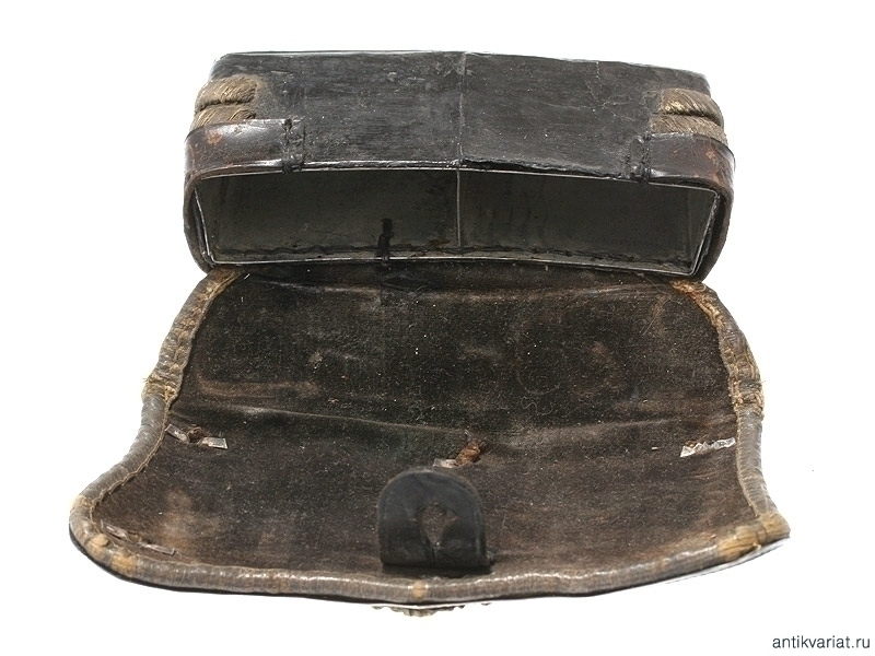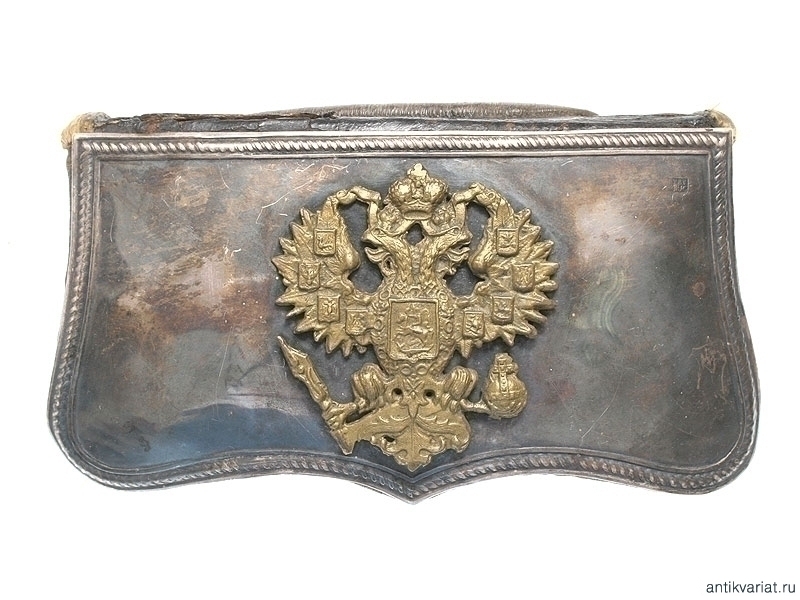 Лядунка офицера армейской кавалерии периода правления Императора Александра II. Крышка из плакированной серебром латуни, орел накладной (реставрирован).