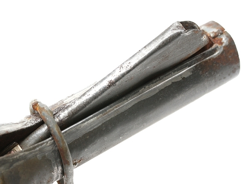Для разрушения высоких проволочных заграждений противника к корпусу гранаты присоединялись три крепкие, тонкие нити длиной около 80 см с привязанными на концах свинцовыми грузиками. Благодаря этому граната могла зацепиться, повиснуть на проволоке и при взрыве разорвать не только нижние, но и верхние проволочные линии.