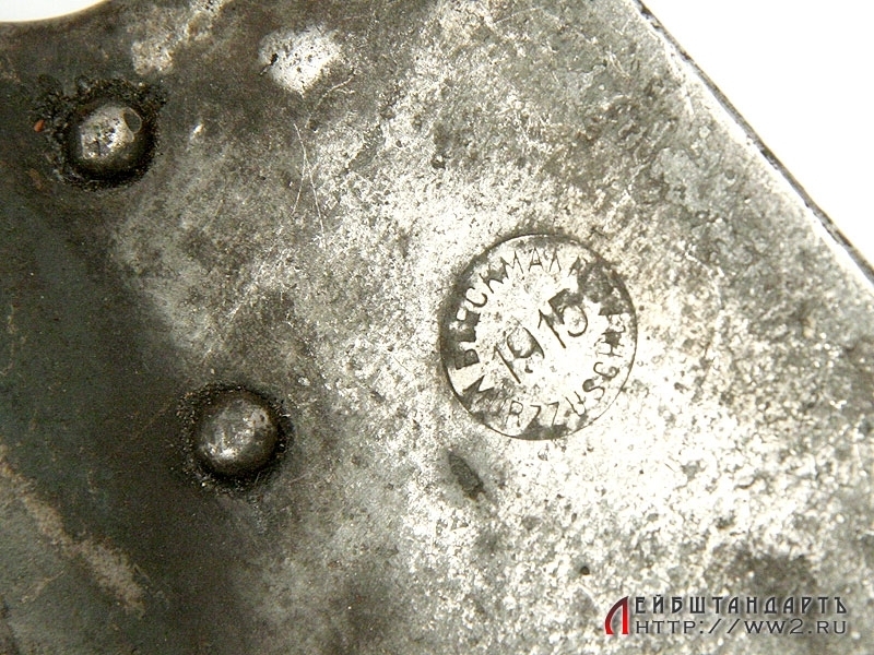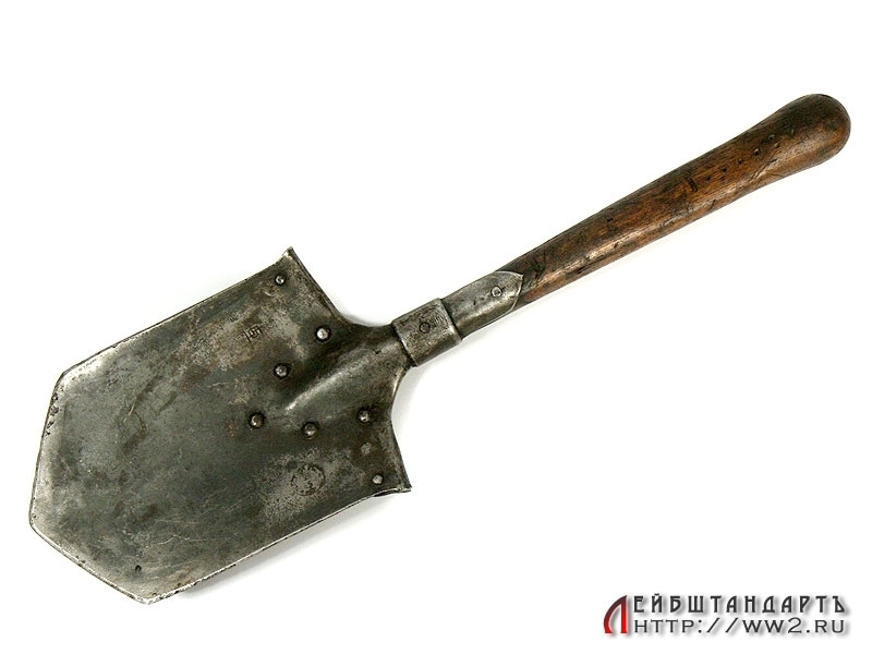 Малая саперная лопата времен Первой мировой войны в очень хорошем состоянии. Имеется клеймо фирмы-изготовителя с годом выпуска - 1915.