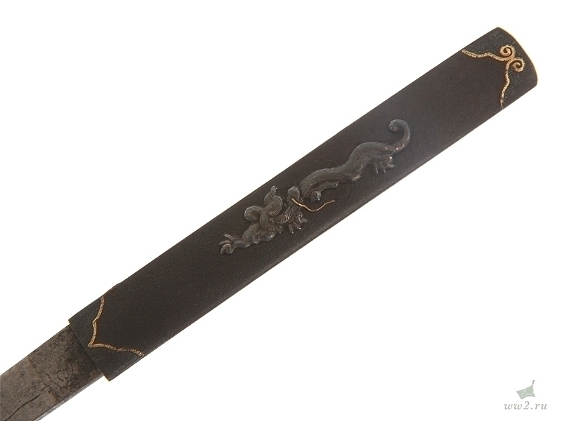 Ножны деревянные, декорированные орнаментом, все металические элементы украшены облаками.