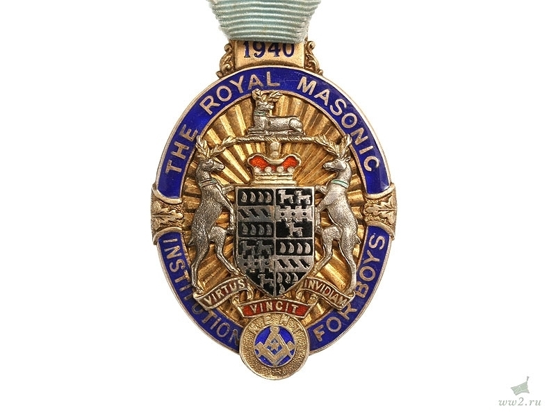 Масонский наградной знак с надписью на аверсе, датированной 1940 годом. Серебро, золочение, эмаль. Хорошее состояние.