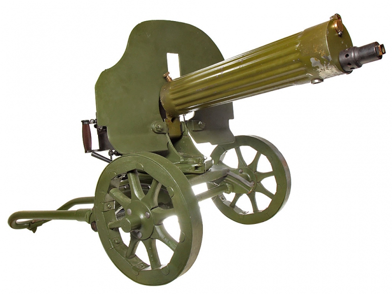 К тому времени ружье Бердана уже было снято с вооружения, и пулеметы Максима были приспособлены к калибру русской трехлинейки Мосина: 7,62 мм.