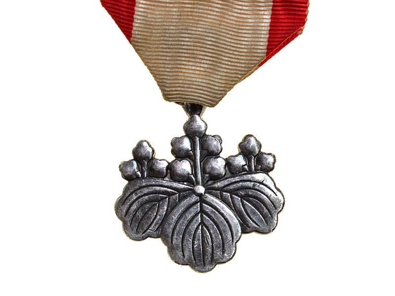 Орден Восходящего Солнца 8-й степени (медаль Белой Павлонии). Полированное серебро, на оригинальной колодке.