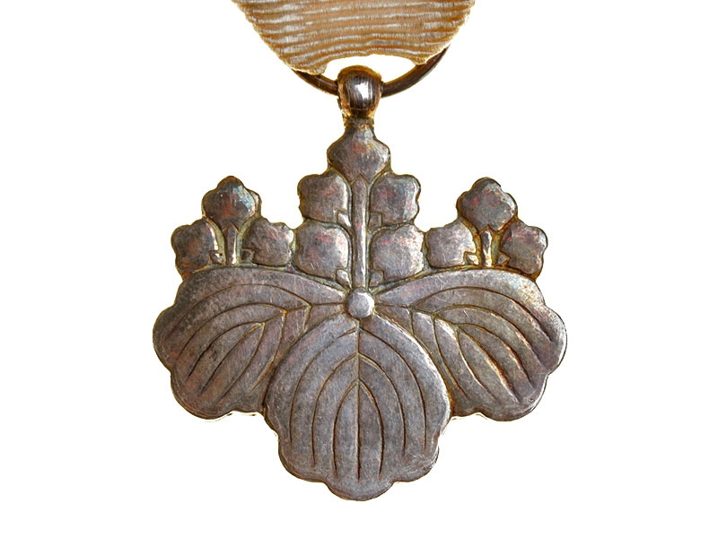 Орден Восходящего Солнца 8-й степени (медаль Белой Павлонии). Серебро, на оригинальной колодке.