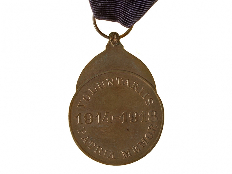 Медаль добровольцев - участников Первой мировой войны. Бронза. На оригинальной ленте.