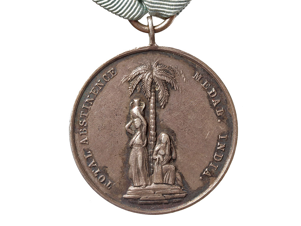 Медаль для рядового состава английских колониальных войск в Индии "За полное воздержание от употребления алкогольных напитков". Медаль серебряная, на оригинальной шелковой ленте. Учреждена в 1862 году.