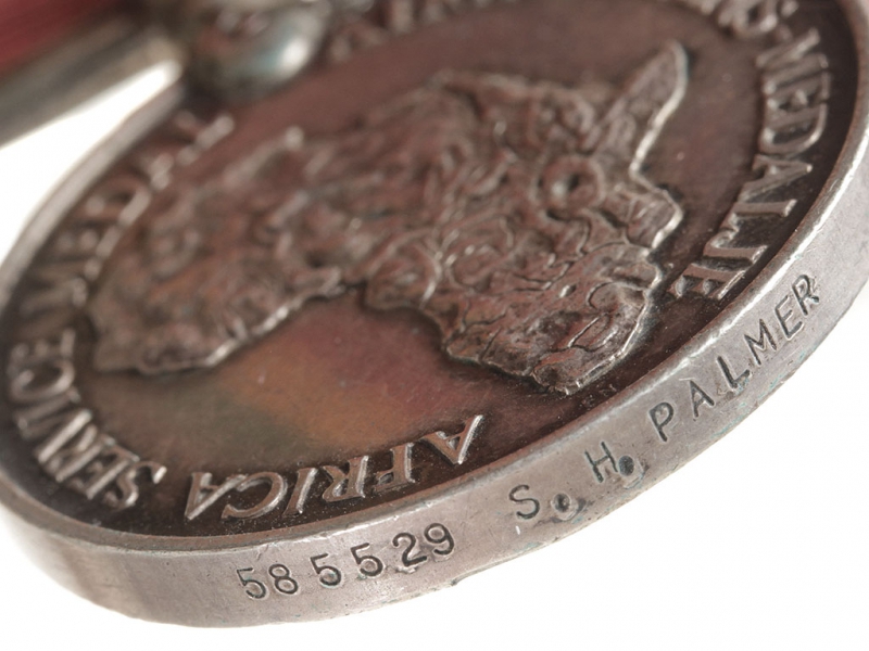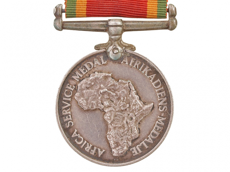 Медаль за службу в Африке в годы Второй мировой войны. Серебро, на оригинальной колодке. На гурте - фамилия и данные награжденного.