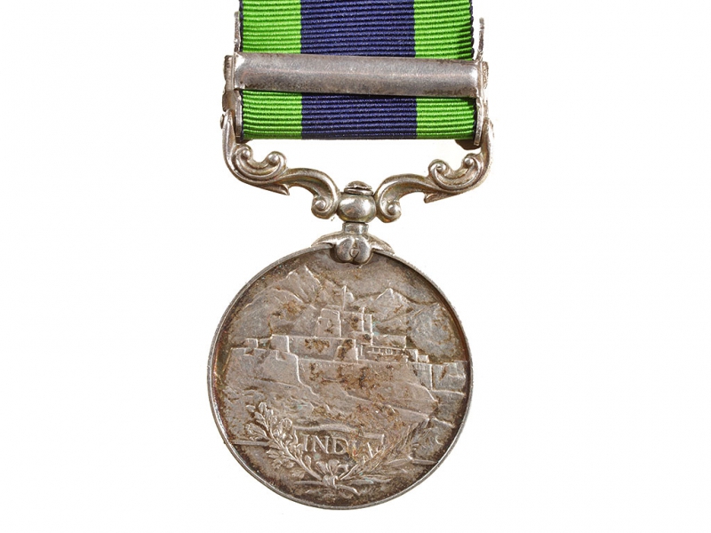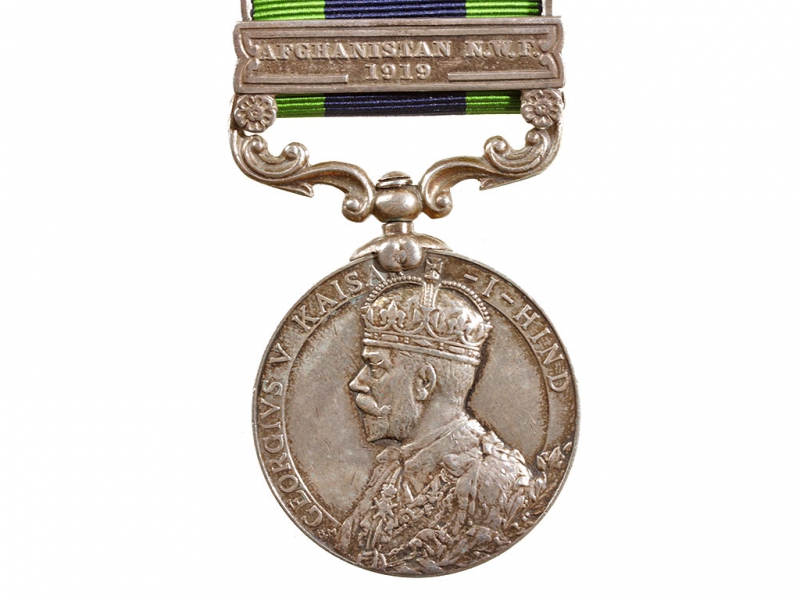 Медаль за службу в Индии с планкой за прохождение службы в Афганистане в 1919 году. Серебро, на оригинальной ленте, с гравированными данными награжденного на гурте.