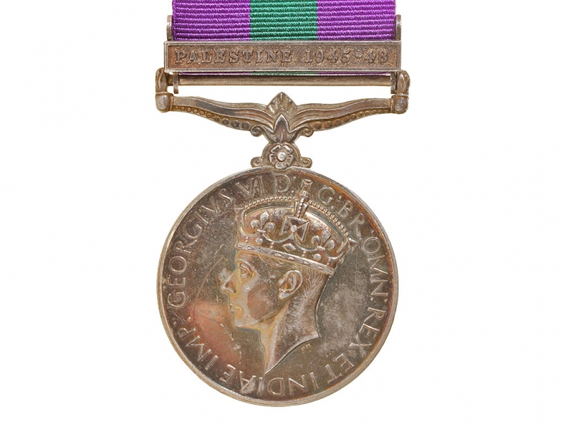 Медаль за службу в Палестине в 1945 - 1948 годах. Серебро, на оригинальной ленте, с гравированными данными награжденного на гурте.
