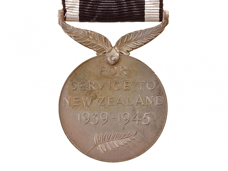 Медаль за службу для новозеландцев в годы Второй мировой войны. Белый металл, на оригинальной ленте.