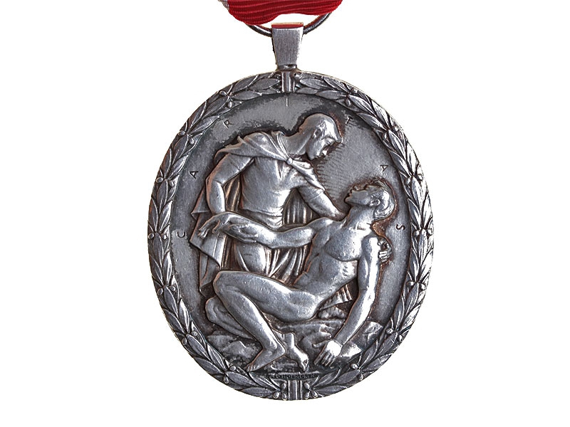 Медаль Красного Креста, серебро, на оригинальной ленте. На гурте выбита фамилия награжденного и дата награждения - 1946 год.