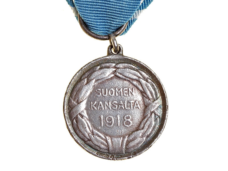 Медаль Креста Свободы за заслуги 1-го класса на оригинальной шелковой ленте. Серебро. Выпуск 1918 года.