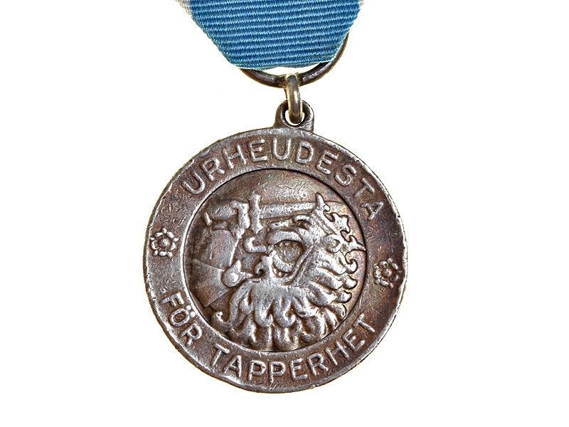 Медаль была учреждена вместе с орденом Креста Свободы в двух степенях: Серебряная и Бронзовая. На лицевой стороне в центре крупным планом изображена голова финского гербового льва с мечом и выбиты по окружности слова «URHEUDESTA / FUR TAPPERHET» («За отвагу» — на финском и шведском языках). На реверсе надпись «SUOMEN KANSALTA» («От финского народа») и год выпуска, обрамлённые венком.