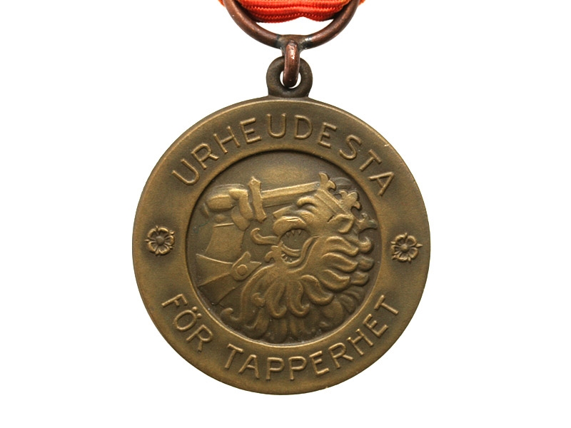 Медаль была учреждена вместе с орденом Креста Свободы в двух степенях: Серебряная и Бронзовая. На лицевой стороне в центре крупным планом изображена голова финского гербового льва с мечом и выбиты по окружности слова «URHEUDESTA / FÖR TAPPERHET» («За отвагу» — на финском и шведском языках). На реверсе надпись «SUOMEN KANSALTA» («От финского народа») и год выпуска, обрамлённые венком.