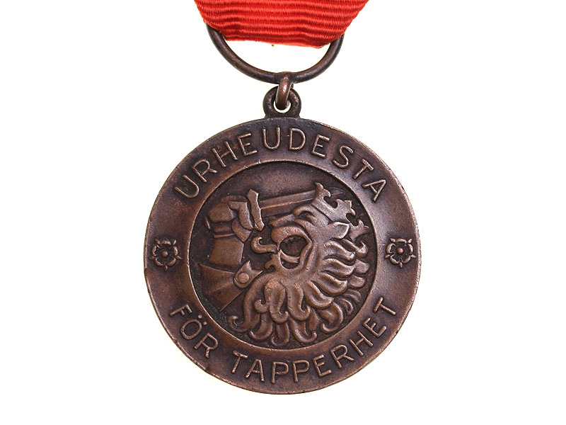 Медаль была учреждена вместе с орденом Креста Свободы в двух степенях: Серебряная и Бронзовая. На лицевой стороне в центре крупным планом изображена голова финского гербового льва с мечом и выбиты по окружности слова «URHEUDESTA / FÖR TAPPERHET» («За отвагу» — на финском и шведском языках). На реверсе надпись «SUOMEN KANSALTA» («От финского народа») и год выпуска, обрамлённые венком.